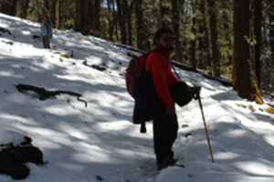 The complete trek to Brahmtal and back takes about 3 days excluding all travel. The trekking route passes through grasslands and dense conifer forests along the hill slopes.