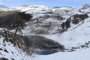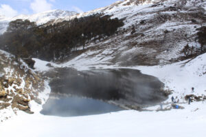 Located at a height of 3400 meters in the Garhwal ranges in Chamoli district(Uttarakhand), Brahmtal is nestled in the lap of the Trishul Massif. This trekking paradise is quite close to ‘Roopkund’ from where the skeletal remains of the Paleolithic man have been discovered. Brahmtal lake is surrounded by beautiful snow-clad peaks. The trek to Brahmtal begins from Ratgaon, 15 km from Tharali, a small village on the banks of Pindar river. Tharali can be reached via KarnPrayag connected by a motorable road.