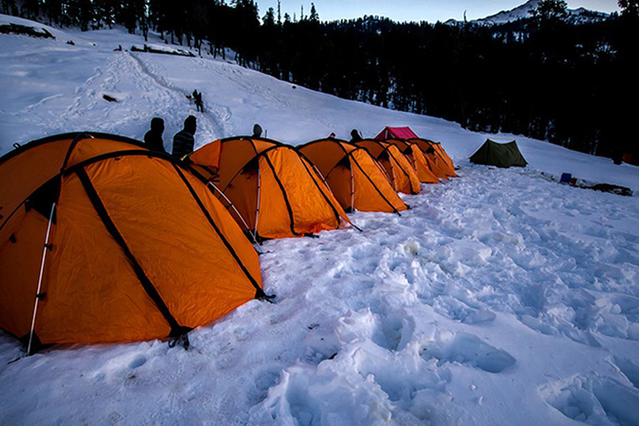 The trekkers will start their ascend after having breakfast from village Saur with pack lunch. The trail passes through dense pine forests, maple trees, a few streams and finally opens out to a beautiful Juda Ka Talab (Juda lake) . Juda ka talab is almost too perfect in its setting as a campsite, with a large lake to your left and a dense oak and pine forest to your right.